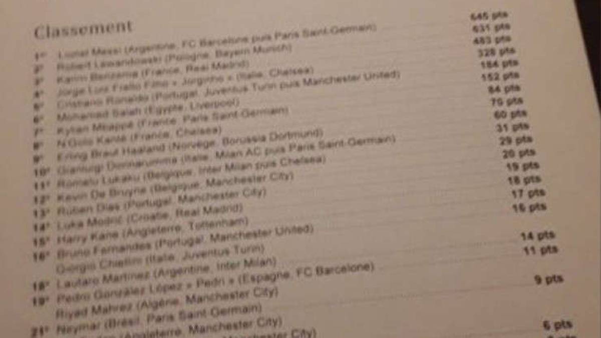 A leaked list of the 2021 Ballon dOr results has been dismissed but Robert Lewandowski is now favourite for the top prize. Am heutigen Freitag wird die französische Sportzeitung France Football die 30 Kandidaten für den Ballon dOr 2021 bekanntgegebenDie Liste wurde zuvor bereits geleakt. As per reports a list of what is being claimed as the final standings of the Ballon dOr 2021 has been doing rounds on social media lately and the surprising thing here is that the list which has been leaked online contains the names of the players in order of the number of votes that have been garnered by them with the name of France football on top.